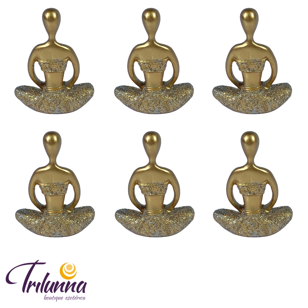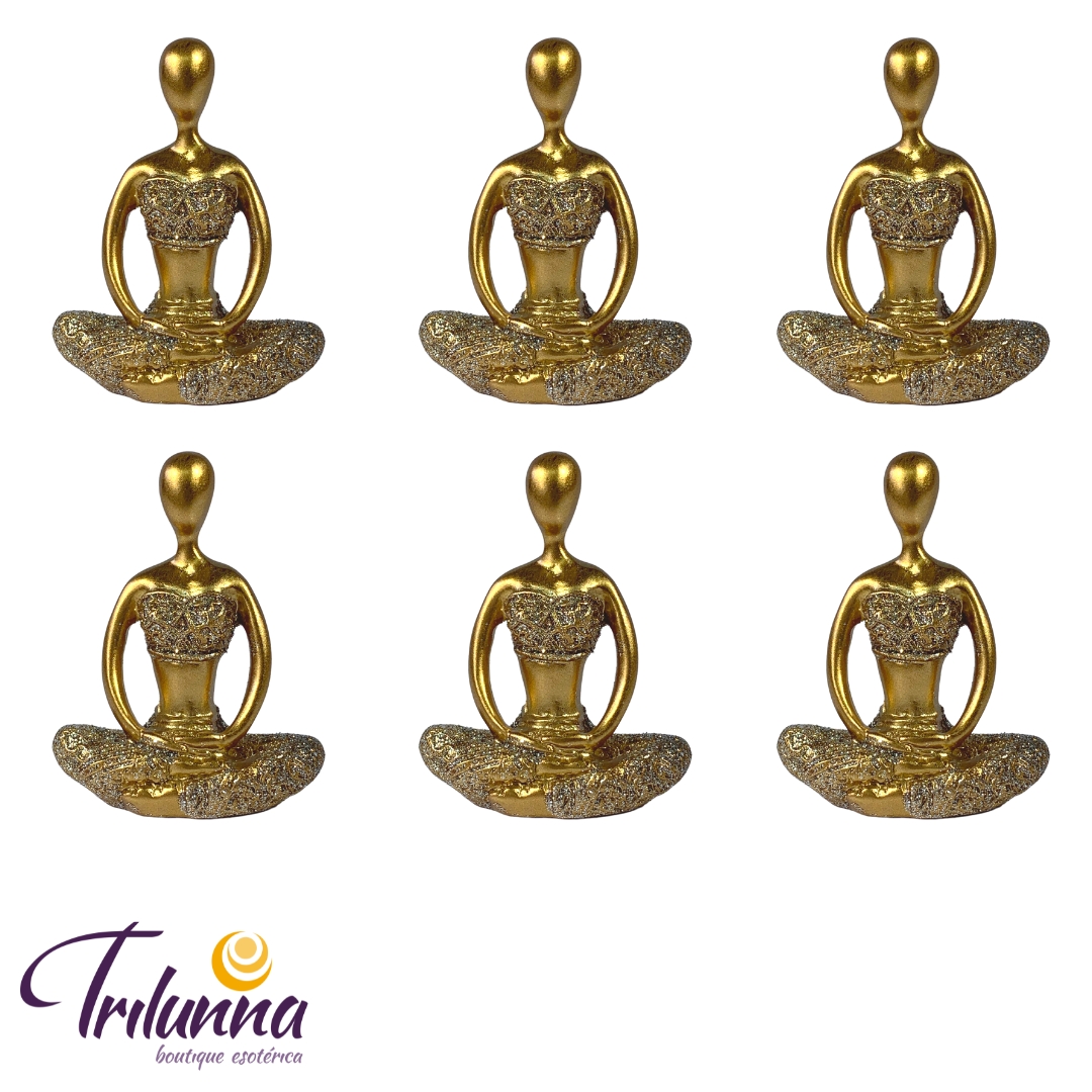 Estátuas Decorativas 06Cm Yogas Douradas Mod1 – 6 Peças