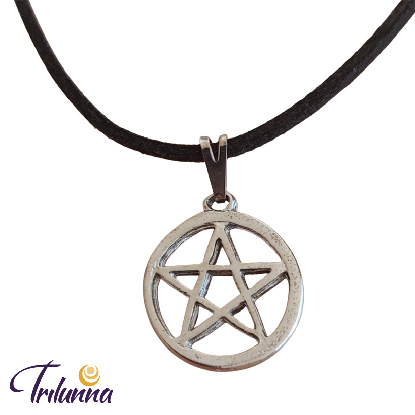Gargantilha Pentagrama 17mm C/Aro Grafite C/Cordão